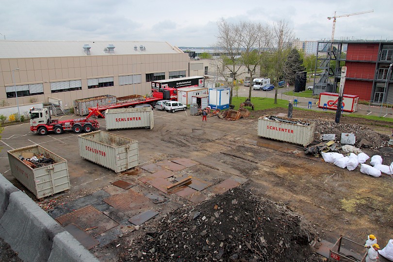 Sanierung des Großbrandes am Institut der RWTH Aachen WZL. Sortierung und Aufnahme der gefährlichen Brandabfälle. Transport und Entsorgung der Brandreste zu verschiedenen Spezialbehandlungsanlagen. Komplettabbruch der verbliebenen mineralischen Gebäudekonstruktion.