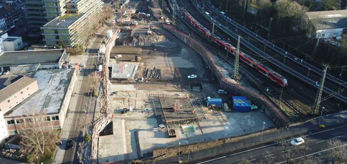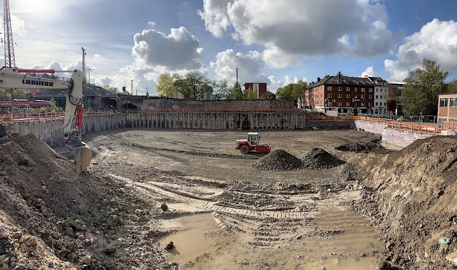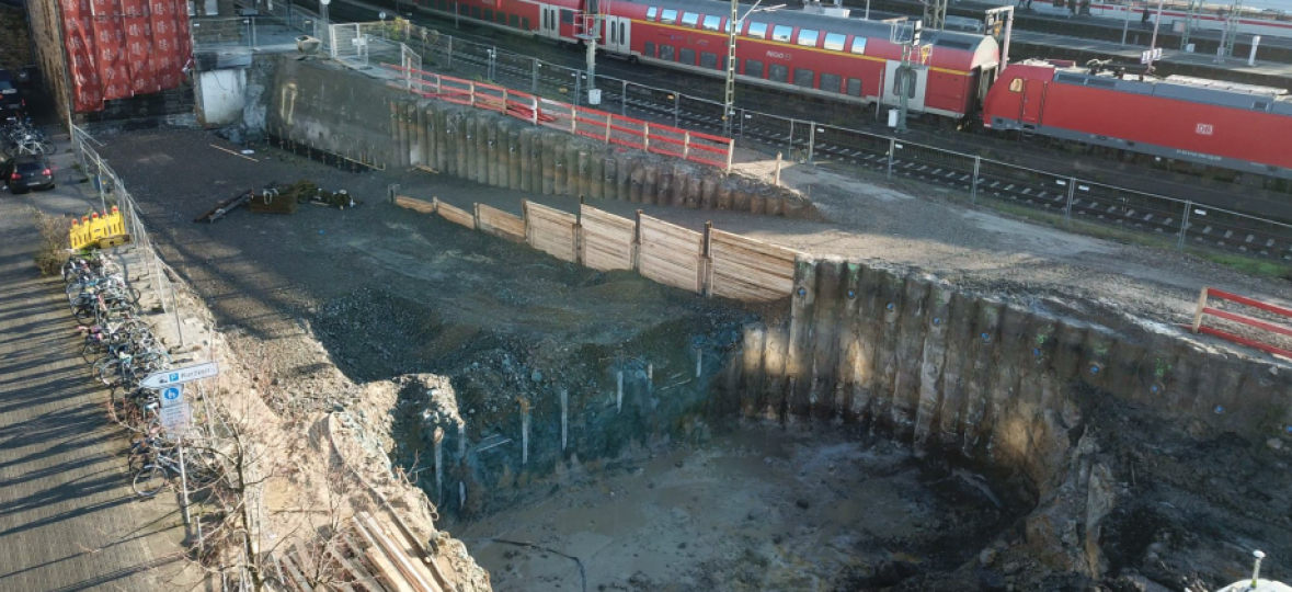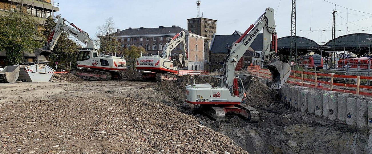 Erdarbeiten zur Erstellung der kompletten Baugrube in Innenstadtlage mit direkter Angrenzung an den Aachener Hauptbahnhof. Das Projekt hat ein Aushubsvolumen von ca. 55.000 m³ und eine durchschnittliche Tiefe von c.a. 6,0 m.