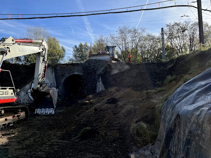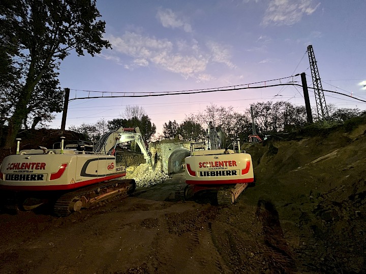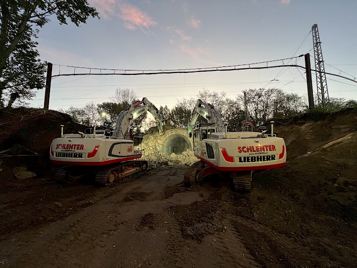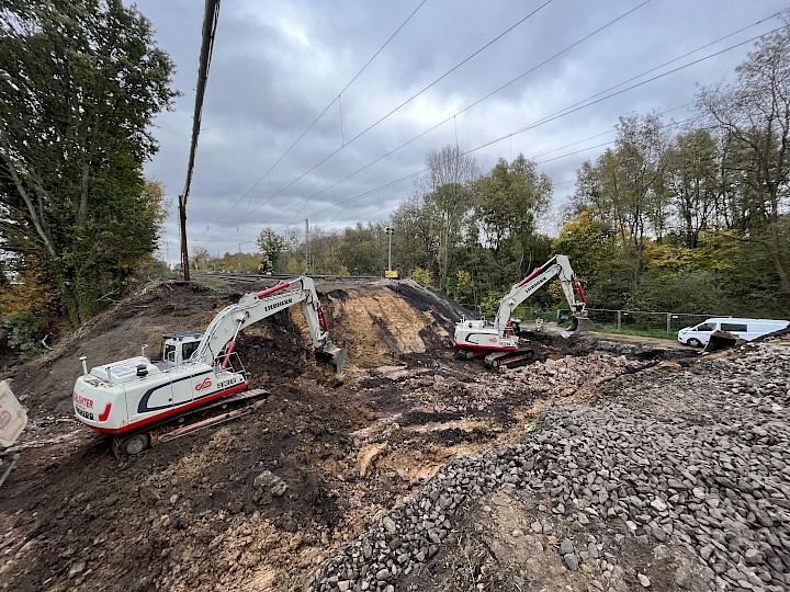 Durchführung von Abbrucharbeiten und Erdarbeiten zur Erneuerung einer Eisenbahnüberführung in Herzogenrath-Kohlscheid.
