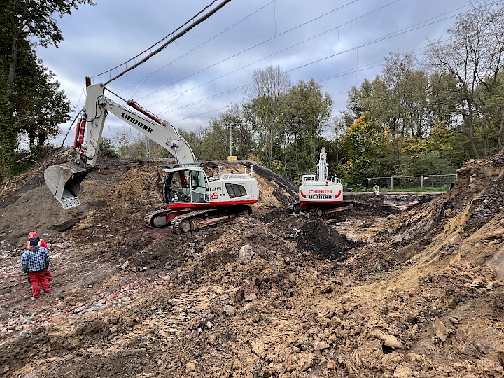 Im Anschluss an die Freilegungsarbeiten konnte das Bauwerk abschnittsweise inklusive Gründung abgebrochen werden und die Baugrube ausgehoben werden. Unterhalb der Gründungsebene erfolgte ein Bodenaustausch, welcher gleichzeitig die Tragschicht des neuen Ersatzbauwerkes bildet.
